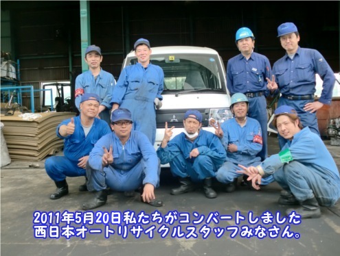 ※ガソリンエンジン車のエンジンを、モーターに乗せ換えて、家庭用コンセント(100V)からバッテリーに充電可能な「改造電気自動車(コンバート EV)」を作成し、平成22年7月29日付けで車検証・ナンバープレート交付(近畿運輸局管内初)。